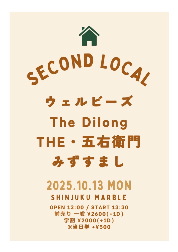 2025/10/13(月・祝) @新宿 Marble 「SECOND LOCAL」 LIVE 2025/10/13(月) 新宿Marble 10/13(月・祝) @新宿 Marble 「SECOND LOCAL」 OPEN 13:00 / START 13:30 ADV 一般 ¥2600 / 学割 ¥2000 (+1D ¥600) DOOR +¥500 ※学割は学生証必須 w/ The Dilong THE・五右衛門 みずすまし URLをコピーする 報告する