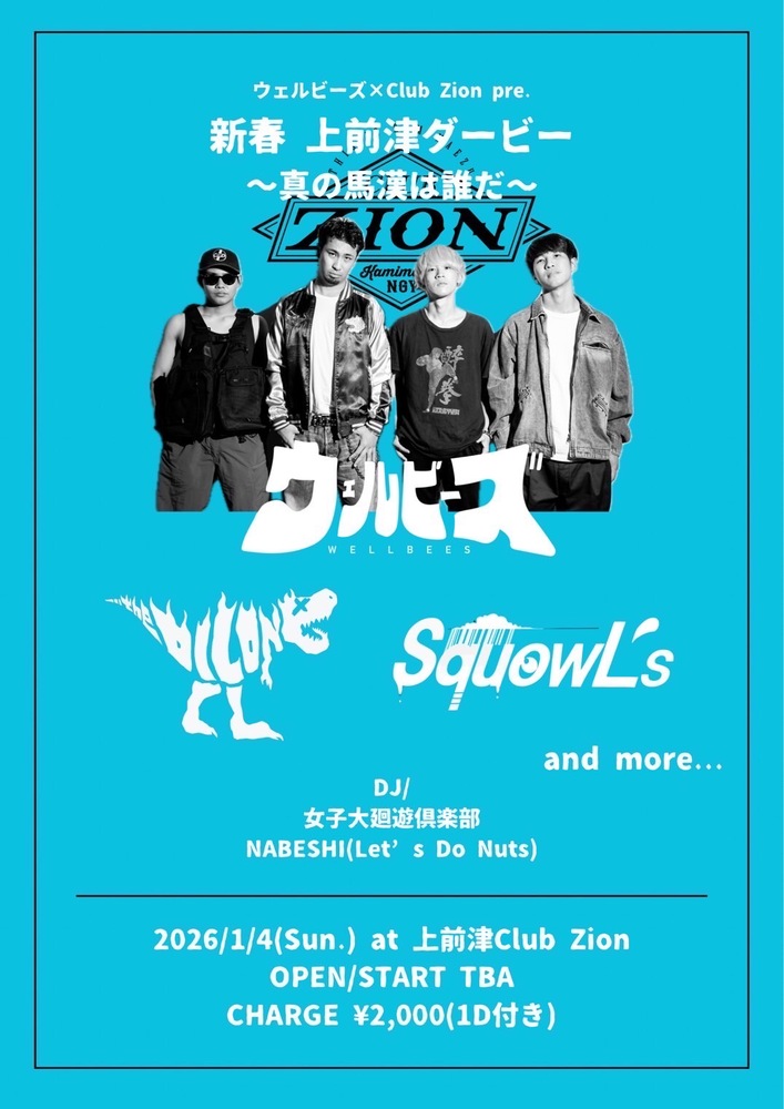 2026/1/4(日) 上前津Club Zion ウェルビーズ × Club Zion pre. 「新春 上前津ダービー 〜真の馬漢は誰だ〜」